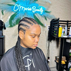 Stitch braids are created using the feed-in braiding technique to form clean, precise braids with defined parts. This style can be worn as straight backs or freestyle designs, offering a sleek and customizable look. This style includes straight-back stitch braids or freestyle stitch braid designs.
